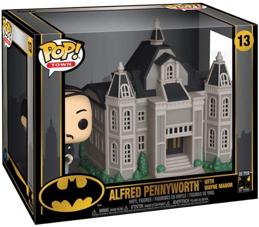 Pop Town é uma coleção relativamente nova da Funko onde um Pop é sempre lançado junto com um prédio ou casa da cultura Pop. Aqui temos Alfred Pennyworth, ex-agente da SAS britânia e o fiel mordomo da família Wayne, braço direito do Bruce e com certeza o que ele tem de mais próximo como figura paterna. Ele vem junto com a imponente Mansão Wayne.